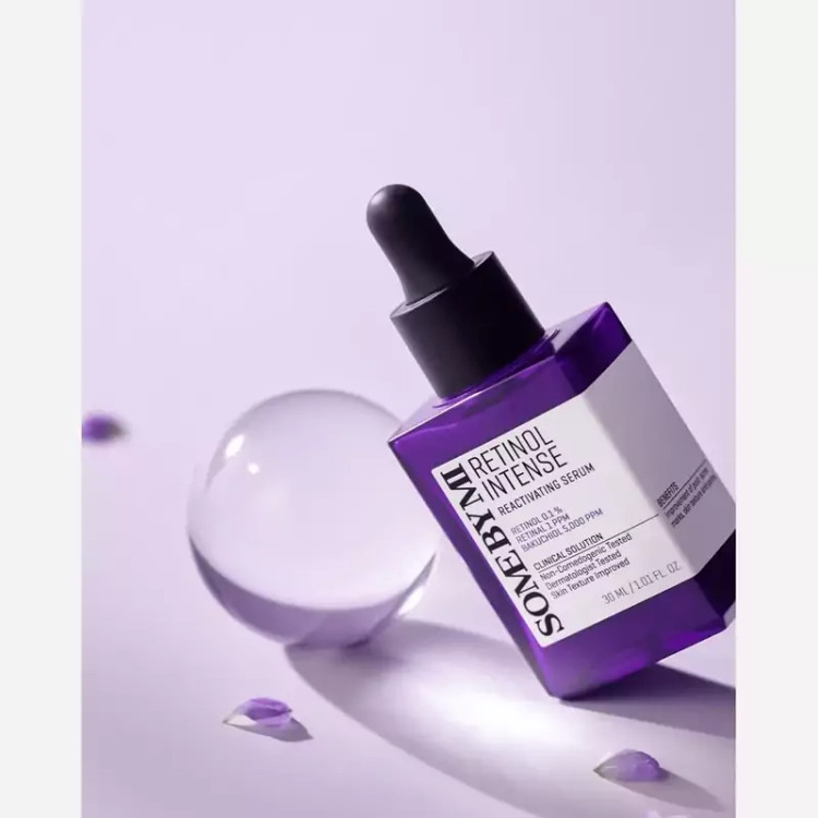 سرم رتینول سام بای می حاوی 0.1% رتینول، 1ppm رتینال و 5000ppm عصاره Bakuchiol است که دارای خاصیت جوانسازی است و به طرز موثری چین و چروک های ناشی از پیری و بالا رفتن سن را بهبود می بخشد و پوست را صاف و یکدست می کند.